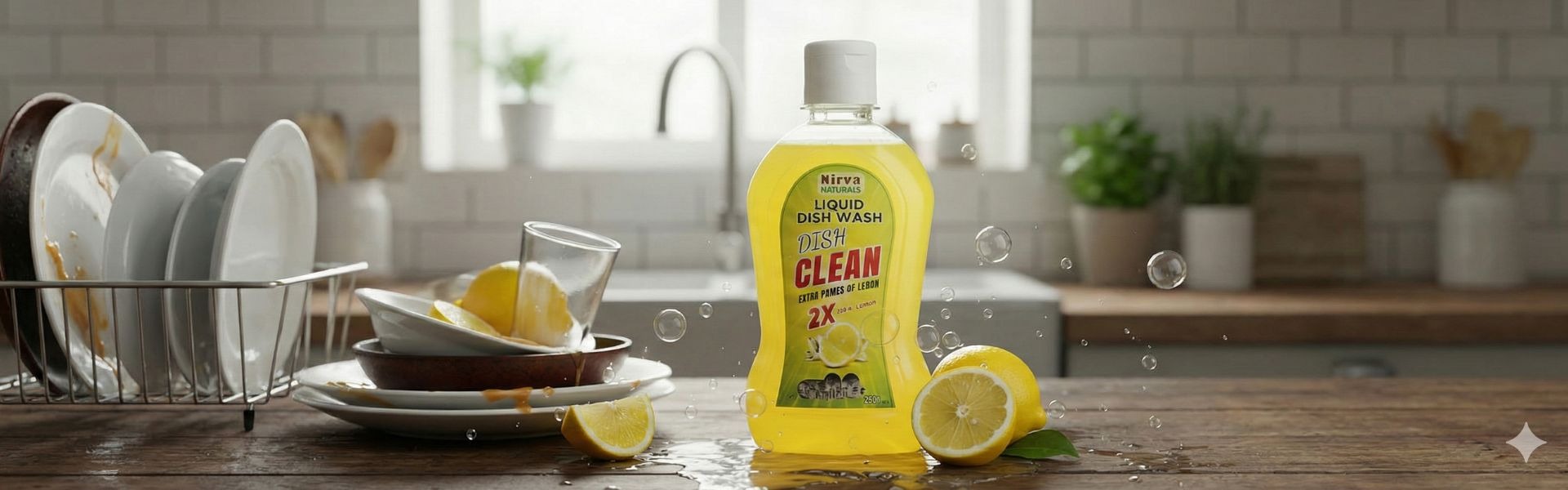 Nirva Liquid Dishwash Lemon (250ml) is a powerful grease-cutting formula designed to remove tough oil, sticky residue and food stains with ease. Enriched with a fresh lemon fragrance, it leaves your utensils sparkling clean and odor-free. Gentle on hands yet tough on grease, it works effectively on stainless steel, glassware, ceramic and non-stick cookware. Just a small amount creates rich foam for economical and efficient cleaning.