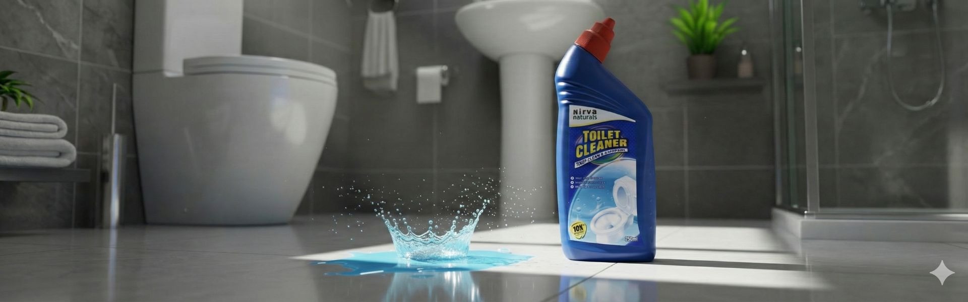 Nirva Toilet Cleaner (250ml) is a strong and fast-acting formula designed to remove tough stains, limescale, hard water marks and germs from toilet bowls. Its thick gel clings to the surface for deeper cleaning, ensuring maximum coverage and long-lasting hygiene. With every use, it leaves your toilet visibly clean, fresh-smelling and hygienically sanitized. Ideal for both Western and Indian-style toilets.